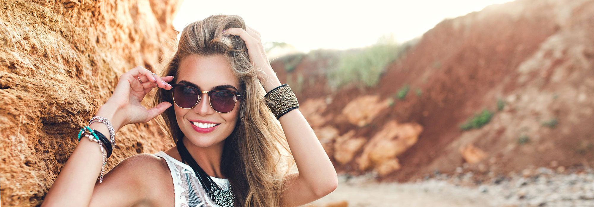 Woman-Smiling-Near-Beach-Rock-FormationsBanner